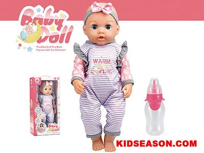 16寸喝水撒尿公仔头手脚搪胶身体吹气带IC24声