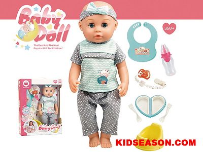 16寸喝水撒尿公仔连配件头手脚搪胶身体吹气带IC24声