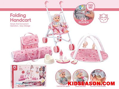 手推车12寸头手脚搪胶身体吹气带IC24声喝水撒尿公仔地毯包包