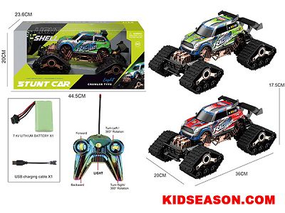| 产品说明: | 一键透光PET车壳履带遥控车5通 | |