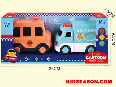 | DESC: | LIGHT UP & MUSIC CARTOON SCHOOL BUS & CARGO TRANSPORT TRUCK TOYS SET | |