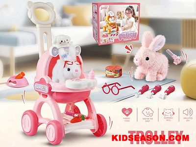 ELECTRIC PLUSH RABBIT BUNNY PET WITH TROLLEY TOYS SET