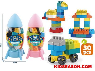 30PCS DIY BUILDING BLOCK TOYS SET WITH PLASTIC ROCKET STORAGE BOX