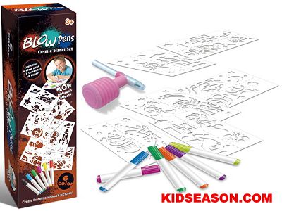 KIDS BLOW PENS PAINTING COSMIC PLANET PLAY SET TOYS INCLUDED 6 PENS