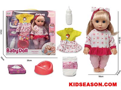 | DESC: | 14 INCH 12 SOUNDS DRINK PEE BABY DOLL TOY | |