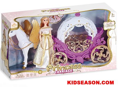 29CM SOLID BODY FASHION PRINCESS DOLL WITH ELECTRONIC PUMPKIN CARRIAGE TOY WITH LIGHTS AND SOUND OF HORSE HOOVES