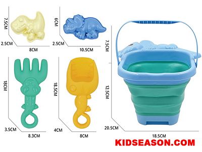 5PCS SUMMER OUTDOOR PLAY DINOSAUR FOLDING BUCKET WITH TOOLS SAND BEACH TOY SET