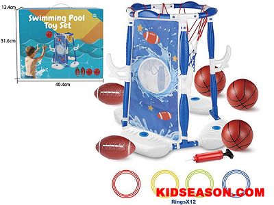 | DESC: | 3 IN 1 SWIMMING POOL BASKETBALL HOOP , RUGBY & TOSS GAME TOY SET | |