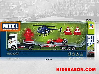 | DESC: | 1:64 SCALE METAL DIE-CAST ALLOY FLATBED TRUCK WITH F1 RACING CAR TOYS SET | |