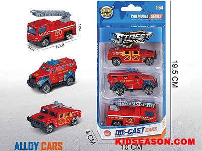 DESC: | 1:64 SCALE FREE WHEEL DIE-CAST FIRE FIGHTER CAR MODEL TOY SET (3PCS/BOX) | |
