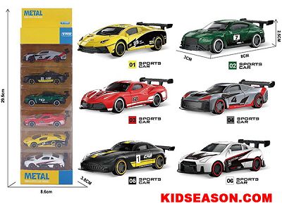 1:64 SCALE 8CM FREE WHEEL DIE-CAST SPORT RACING CAR TOYS SET (6PCS/BOX)