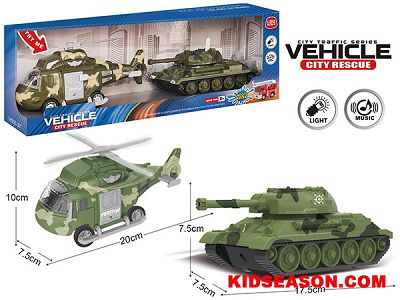 | DESC: | LIGHT UP & SOUNDS FRICTION MILITARY TANK & HELICOTPER TOYS SET | |