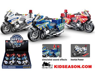 | DESC: | 1:20 SCALE LIGHT UP & SOUNDS INERTIA POLICE MOTORCYCLE TOYS SET (6PCS/BOX) | |