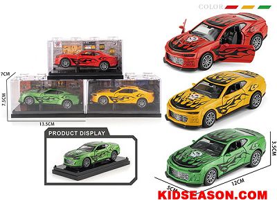 1:36 SCALE 12CM PULL BACK OPEN DOOR FIRE DRAGON PRINTED DIE-CAST CAMARO SPORT CAR MODEL TOYS WITH STORAGE BOX