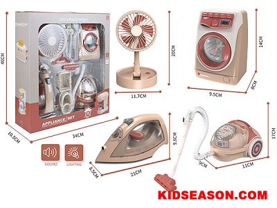 | DESC: | 4 IN 1 PRETEND PLAY FAN WASHING MACHINE VACUUM CLEANER IRON TOY SET | |