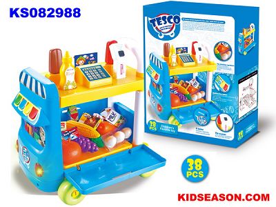 | DESC: | CHILDREN PRETEND PLAY SUPER MARKET CASH REGISTER CART TOYS SET 38PCS | |