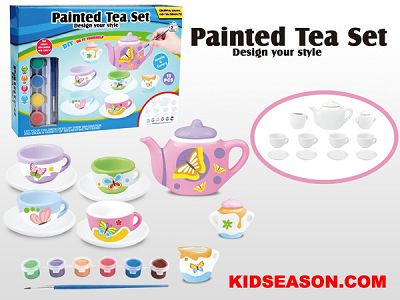 DESC: | DIY PAINTED KIDS PRETEND PLAY CHINA PORCELAIN CERAMIC TEA SET TOYS | |
