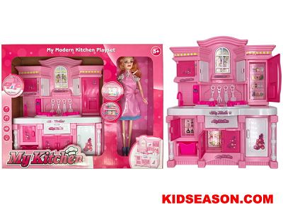 | DESC: | KIDS PRETEND PLAY MUSICAL AND LIGHTS UP CABINET KITCHEN TOYS WITH BARBIE DOLL SET | |