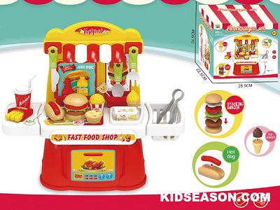 DESC: | 42PCS HAMBURGER FAST FOOD MINI SHOP TOYS PLAY SET | |