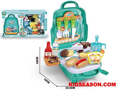 DESC: | CUTTING CAKE FOOD TOYS PLAY SET WITH SUITBASE & BACKPACK | |