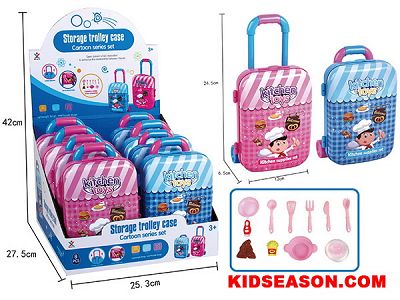 KIDS STORAGE TROLLEY CASE WITH KITCHEN TOYS