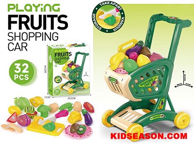DESC: | 32PCS PRETEND PLAY SUPERMARKET SHOPPING CART WITH CUTTING VEGETABLE TOY | |