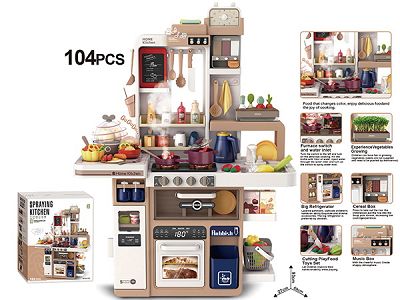 104PCS 93CM PRETEND PLAY MUSIC LIGHTS SPRAYING WATERING FOODS CHANGE COLOR KITCHEN TABLE TOY