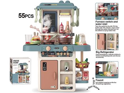 55PCS 63CM PRETEND PLAY LIGHTS SPRAYING WATERING FOODS CHANGE COLOR KITCHEN TABLE TOY