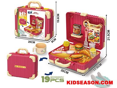 19PCS 2 IN 1 PRETEND PLAY FAST FOODS SUITCASE TOY