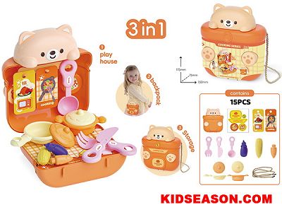| DESC: | 3 IN 1 PRETEND PLAY CUTE BEAR STORAGE BOX SHOULDER BAG WITH KITCHEN TOY | |