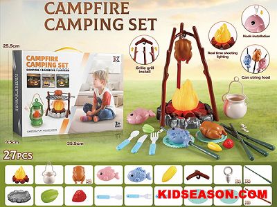 | DESC: | 27PCS LIHGT UP & SOUNDS CAMPFIRE BARBECUE CAMPING PLAY HOUSE TOYS SET | |