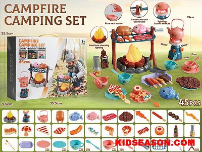 | DESC: | 45PCS LIHGT UP & SOUNDS CAMPFIRE BARBECUE CAMPING PLAY HOUSE TOYS SET | |
