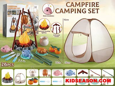 | DESC: | 26PCS LIHGT UP & SOUNDS CAMPFIRE BARBECUE CAMPING TENT PLAY HOUSE TOYS SET | |
