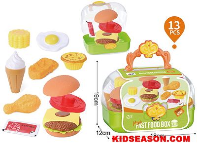 13PCS PRETEND PLAY FAST FOODS UP TOY WITH PLASTIC STORAGE BOX