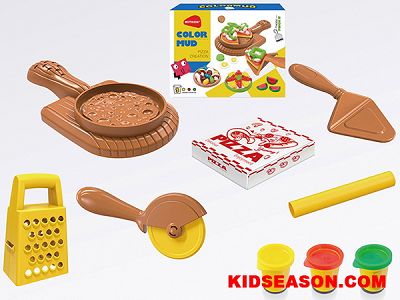 KIDS PLAY DOUGH PIZZA CREATION PLAYSET WITH 3PCS 2OZ CAN