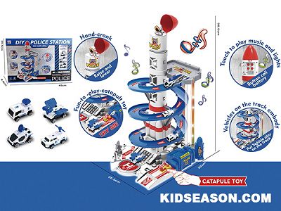 | DESC: | PRETEND PLAY MUSIC AND LIGHTS DIY POLICE STATION PARKING LOT WITH DIE-CAST CAR TOY SET | |