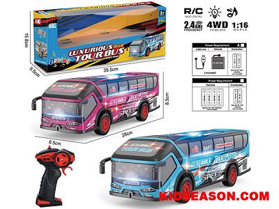 DESC: | 1:16 SCALE 4 CHANNELS 2.4G REMOTE CONTROL MUSICAL AND LIGHTS UP BUS TOY INCLUDED BATTERY | |