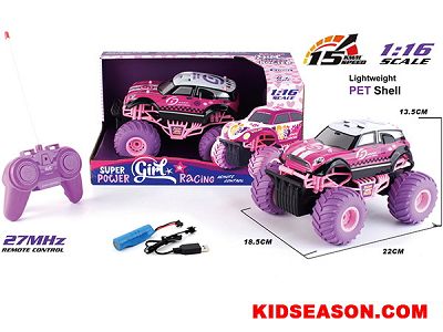 | DESC: | 1:16 SCALE 27MHZ 4 CHANNEL GIRLS RC REMOTE CONTROL BIG WHEEL MONSTER SMART CAR TOY | |