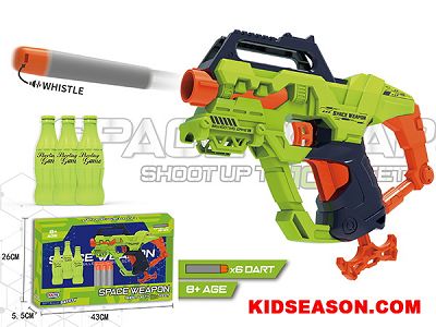 DESC: | KIDS SPORT WHISTLE SOFT BULLET SPACE WEAPON GUN SHOOTING GAME WITH COKE BOTTLE TARGET TOY SET | |
