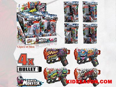 HUMTER MONSTER UV DOODLE PRINTED BLASTER GUN WITH 4PCS SOFT BULLET