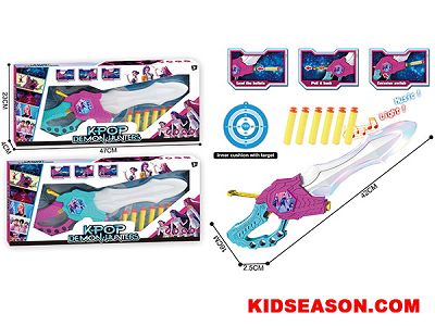 | DESC: | 2 IN 1 K-POP DEMON HUNTERS FLASH LIGHTS AND SOUNDS SWORD SOFT BULLET SHOOTING GAME TOY | |