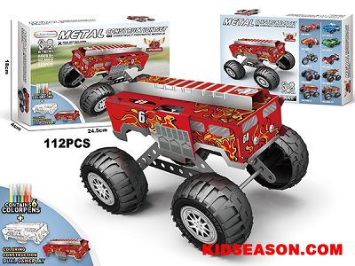 金属积木拼装大脚车消防车涂鸦拼搭双重玩法112PCS