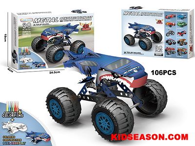金属积木拼装大脚车鲨鱼涂鸦拼搭双重玩法106PCS