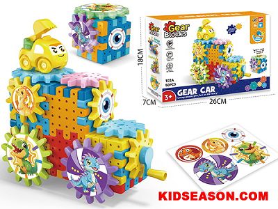 恐龙主题小汽车造型工程车可DIY拼装旋转齿轮积木科教益智 50PCS