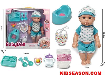 | 产品说明: | 14寸会喝水尿尿定眼娃娃带12声IC | |