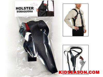 | 产品说明: | 黑色腋下间谍枪套配银色左轮枪 | |