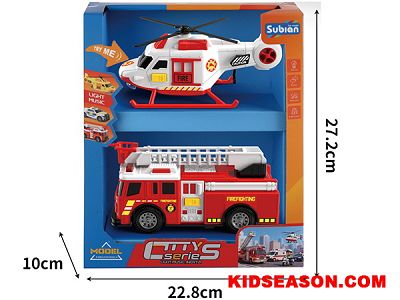 | 产品说明: | 城市消防套装 拉线飞机惯+性消防车 灯光&声效 | |