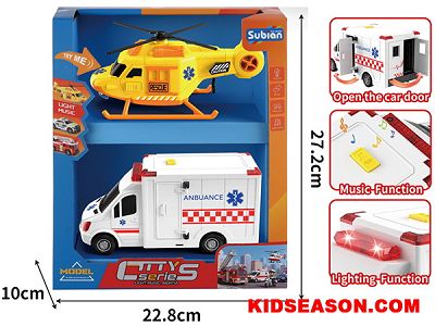| 产品说明: | 城市救护套装 拉线飞机+惯性救护车 灯光&声效 | |
