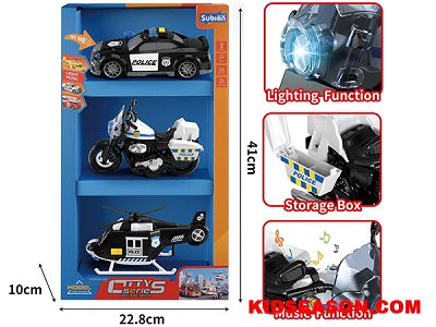 | 产品说明: | 城市特警套装 惯性特警车+惯性摩托+拉线飞机 灯光&声效 | |