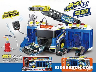 | 产品说明: | 声光音乐多功能消防车收纳轨道配2个合金车(3颗AA,不包) | |